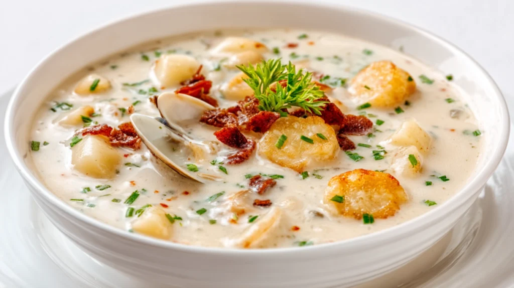 - Ladle your creamy chowder into bowls and garnish with the crispy bacon and fresh parsley. Serve it hot.