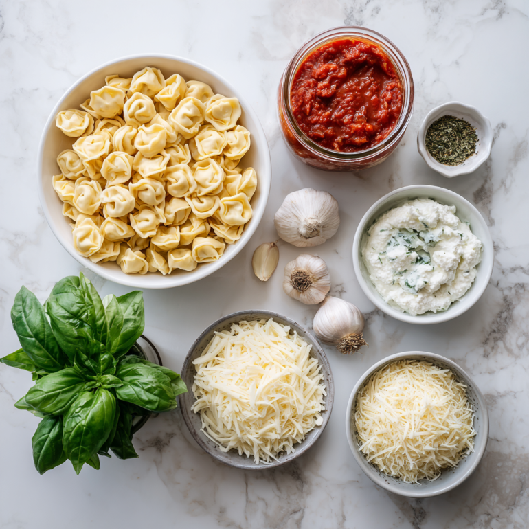 An absolute must! Mozzarella gives that melty, gooey layer we all adore on top of the tortellini. I usually grab the pre-shredded kind for convenience, but freshly shredded mozzarella will give you even more cheesiness! You could also jazz it up with provolone or a sharp cheddar for a twist!